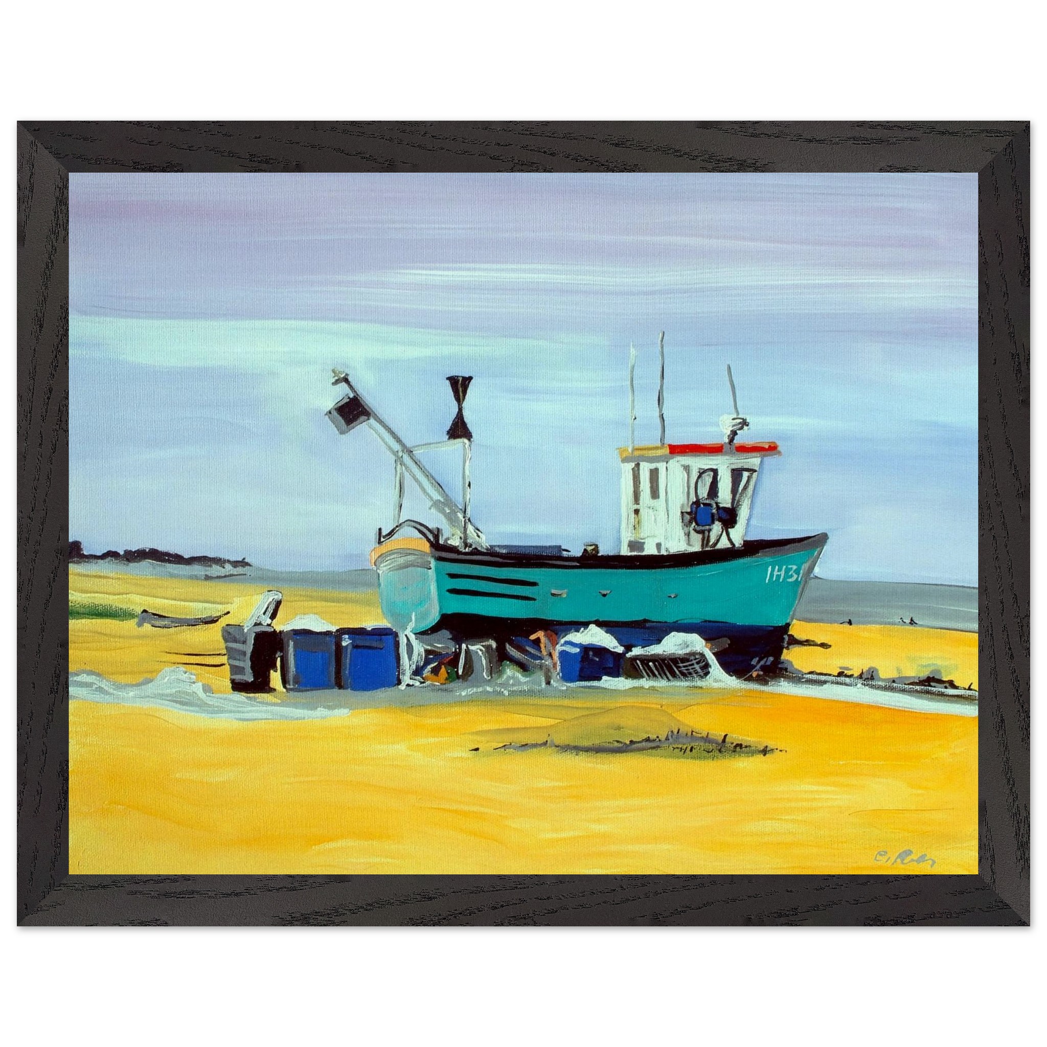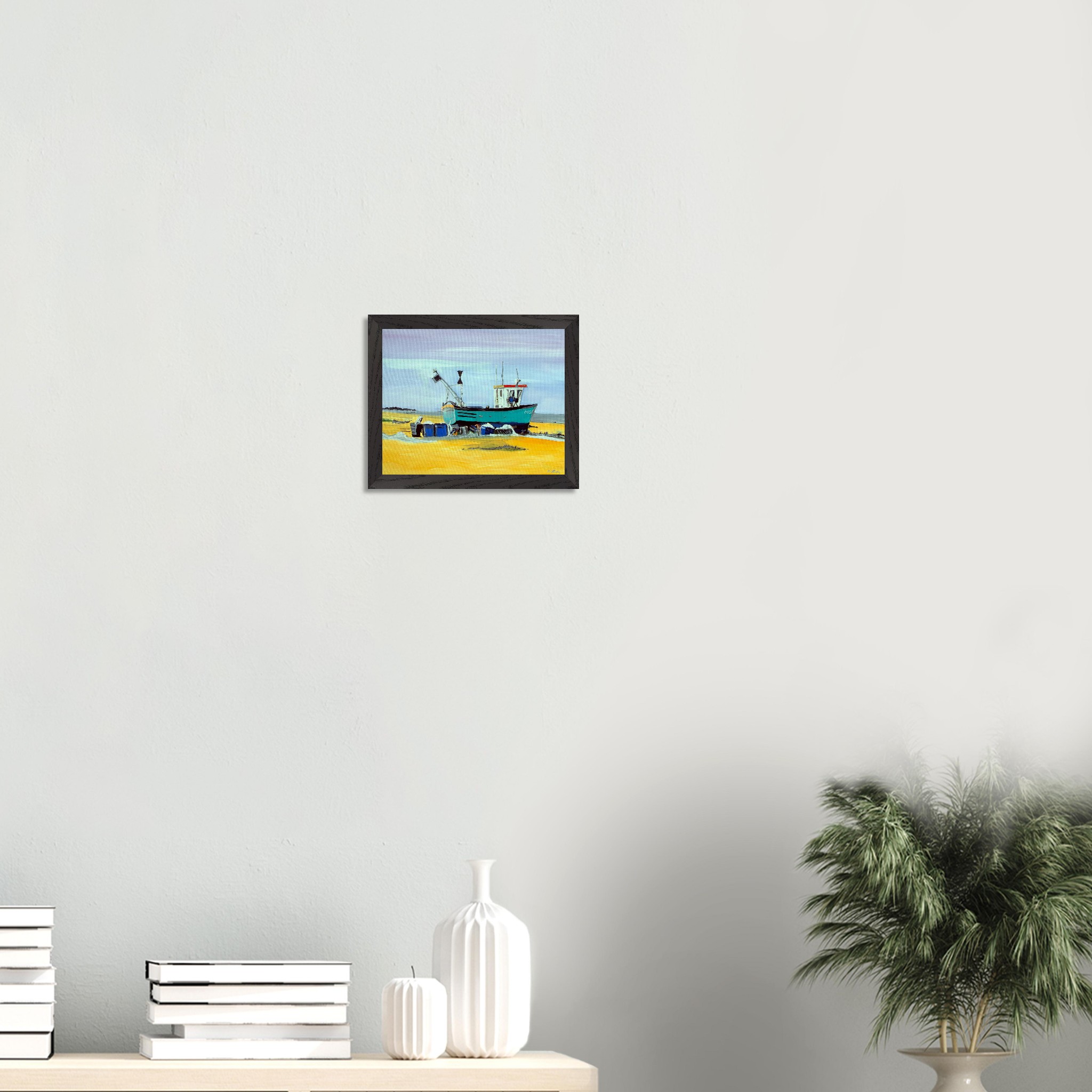 Bring the tranquility of the coast into your home with this stunning framed poster, featuring an acrylic painting of a serene boat on a beach. Printed on museum-quality, uncoated, natural white paper (250 gsm), this artwork boasts exceptional detail and a luxurious matte finish. Our premium wooden frames, made from responsibly sourced oak or ash, showcase unique wood grains for a distinctive look. The frames are 20mm thick and wide, offering a more substantial feel than standard options, and come with a shatterproof plexiglass to protect your artwork.