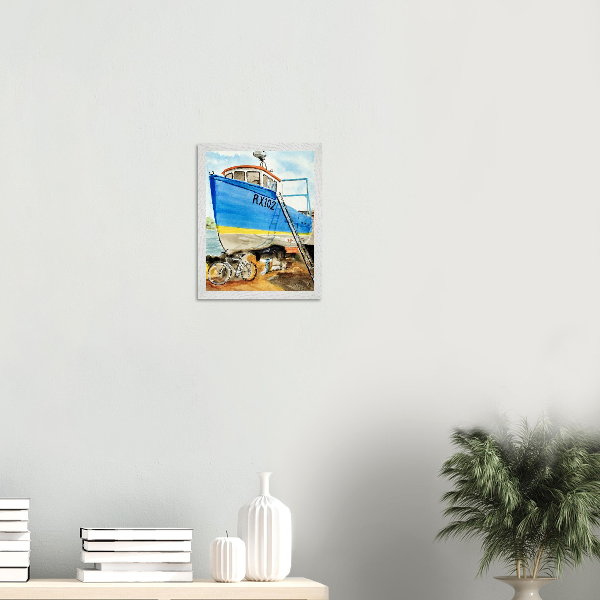 Boat at Rest Watercolour & Ink Framed Poster – Oak/Ash Wood Frame, Museum-Quality Paper, Ready-to-Hang