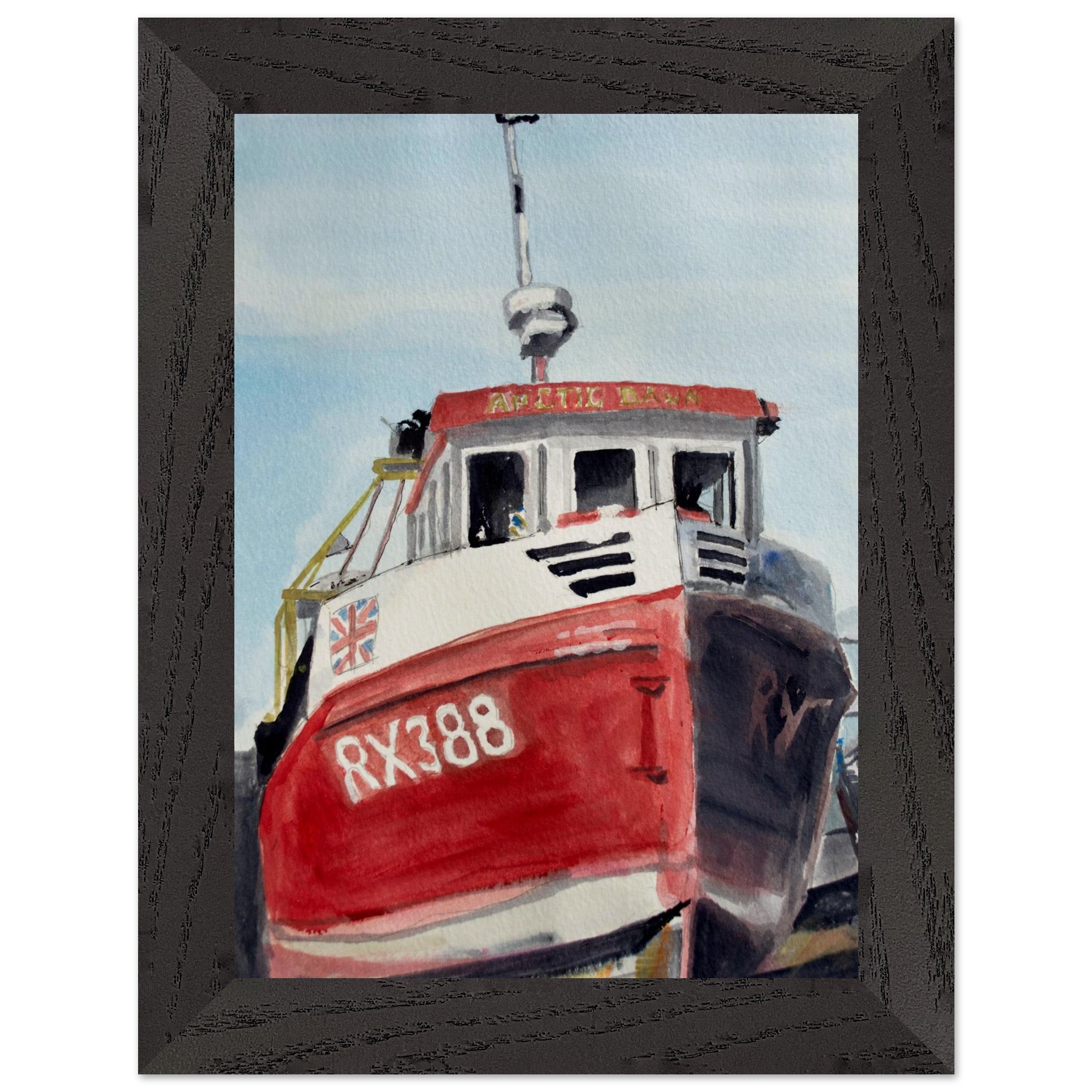 Felixstowe Red Boat Watercolour Art Print – Framed Poster, Museum Quality Paper, Oak/Ash Wood Frame