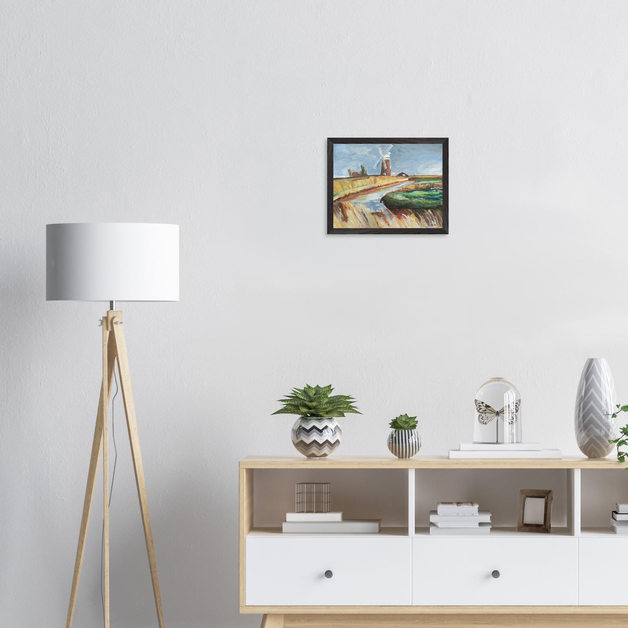 Horsey Windpump Oil Painting Mounted Framed Poster – Museum Quality Paper & Oak/Ash Wood Frame