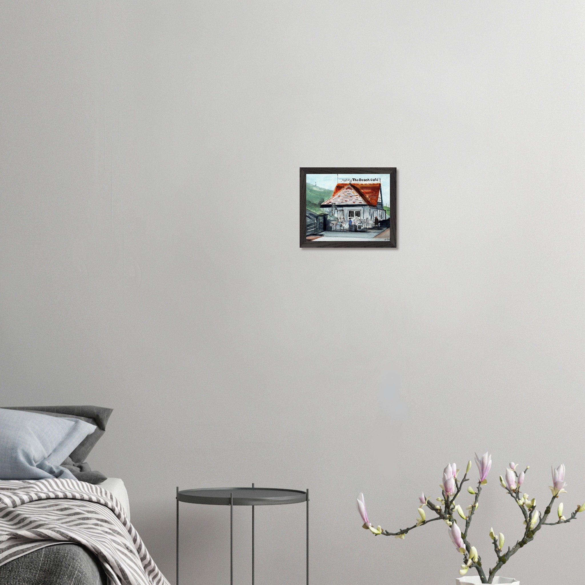 Transform your space with the charming ‘Jay Jays Beach Café, Gorleston’ watercolour painting, beautifully presented in a premium, ready-to-hang framed poster. This exquisite piece is printed on master’s edition, museum-quality, uncoated paper with a sophisticated matte finish, boasting a substantial 250 gsm weight (0.29mm thickness), perfect for fine art. The frame itself is a statement of quality, crafted from responsibly sourced oak or ash wood with a distinctive grain, measuring a robust 20mm (0.79″) in thickness and width. For durability and clarity, the artwork is protected by shatterproof plexiglass. This FSC-certified, sustainable artwork comes complete with a hanging kit, making it effortless to adorn your walls immediately. Bring a touch of coastal elegance and artistic brilliance into your home or office today!