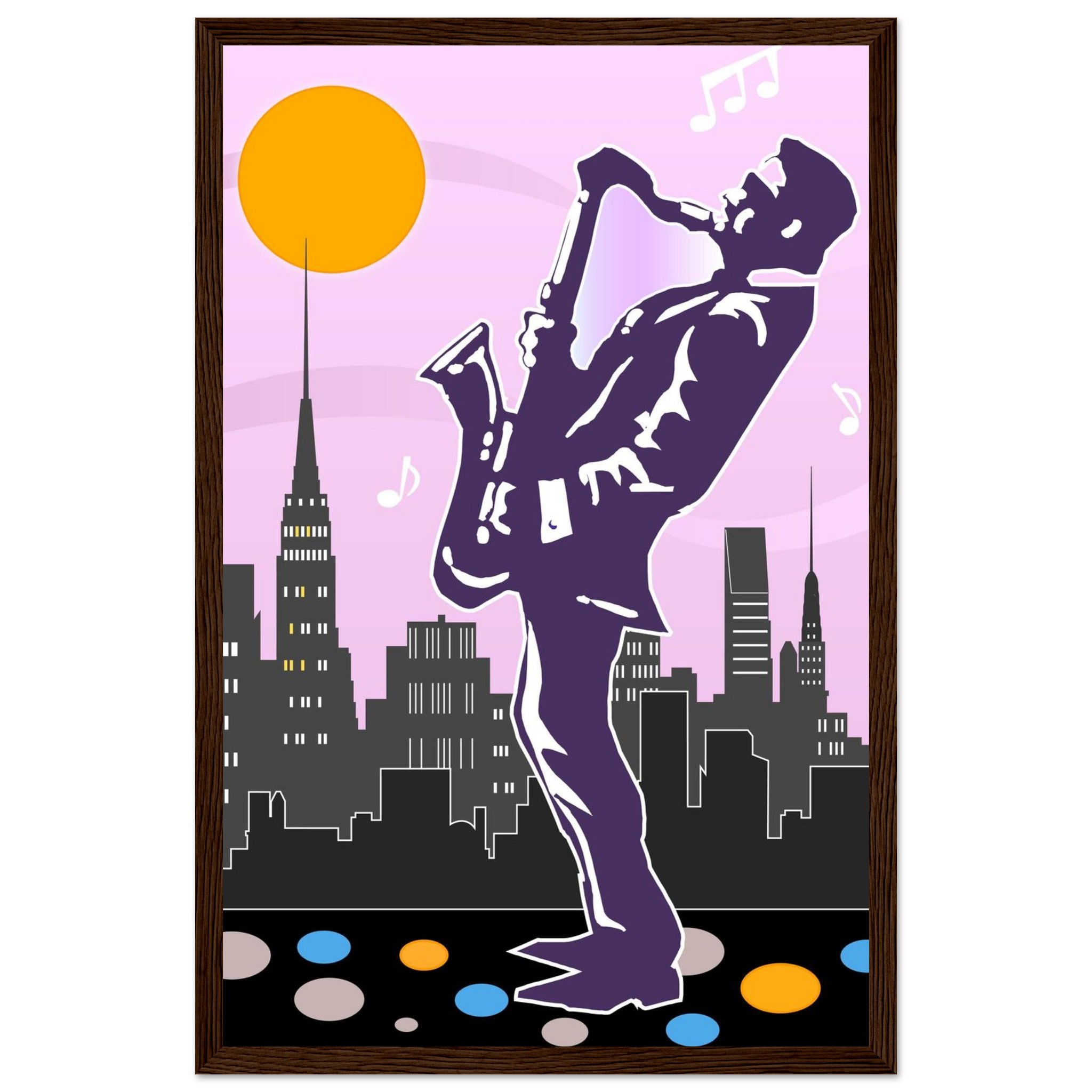 Bring the electrifying energy of New York City into your space with our ‘Jazz New York’ Framed Poster. This stunning art print captures the soulful rhythm and iconic atmosphere of jazz in the Big Apple, printed on high-quality, classic semi-gloss paper that makes colors pop with a subtle, sophisticated shine. Crafted for durability and style, our wooden framed posters are more than just wall art – they’re a statement piece.